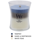 ウォームウッズ:森で集めた植物や樹木を暖炉やストープで燃やす際に漂う香りのイメージアンサンブルファイヤーサイド:アンバー、ベチベル、ムスクの自然な香りレッドウッド:レッドウッド、白檀、アンバーの奥深い香りサンダルウッドクローブ:白檀と甘いグローブの絶妙なブレンドトリロジージャーは3つの香りが層になっていて、使っていくうちに香りがかわっていくので1つで3つの香りとブレンドの香りが楽しめます。