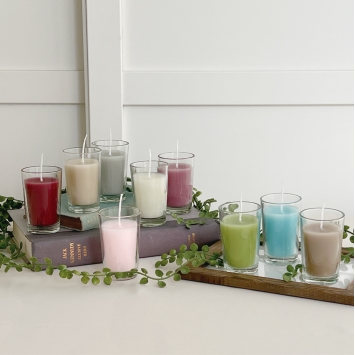 おしゃれなデザインと優しいパステルカラーのグラスキャンドル